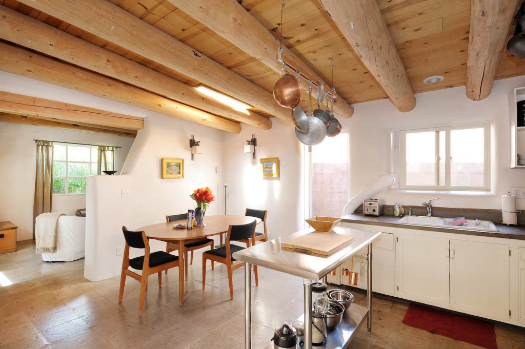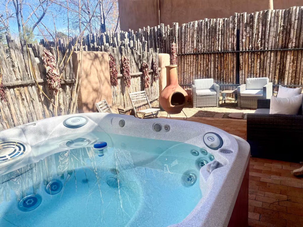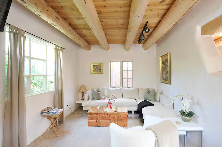 Casa Luna Casa Luna sits on a peaceful & prestigious historic road, 10 min walk to the Plaza and 5 min. walk to Canyon road. The adobe, recently renovated, features two bedrooms and two baths (1 and 1/2), a open concept kitchen private patio & private Hot Tub! New AC mini split system.